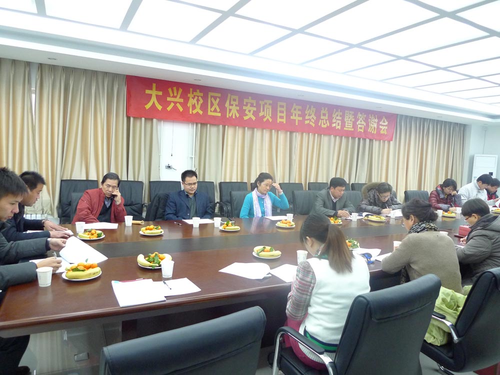 2012年12月29日,大兴校区召开保安项目年终总结暨答谢会,校长助理兼大兴校区管委会常务副主任张启鸿出席会议,参加会议的还有理学院、文法学院、计信部等常驻大兴校区的教职工及大兴校区管委会教务、学工、综合办、后勤、安保等各办公施工作人员。