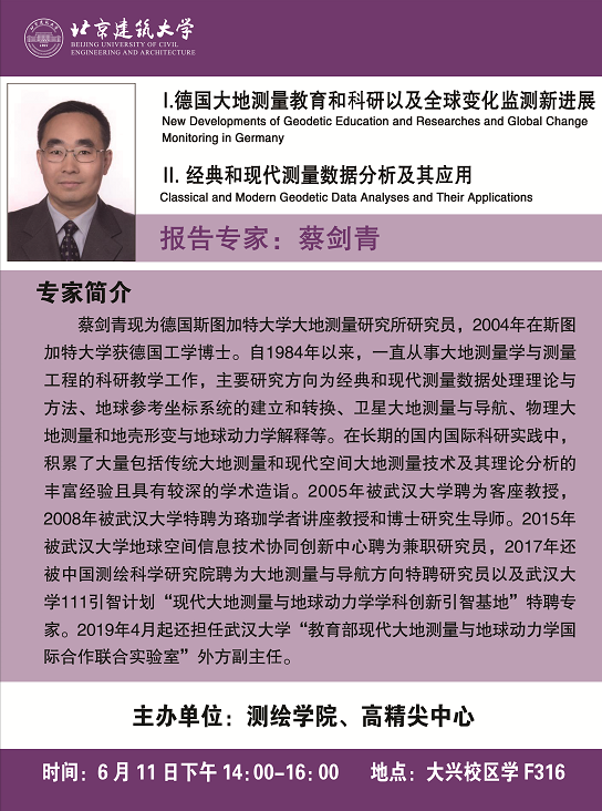 学术报告:Ⅰ.德国大地测量教育和科研以及全球变化监测新进展 Ⅱ.经典和现代测量数据分析及其应用