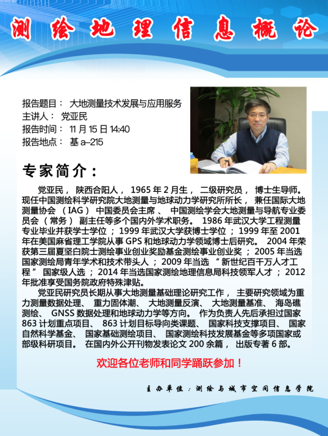 学术讲座:大地测量技术发展与应用服务