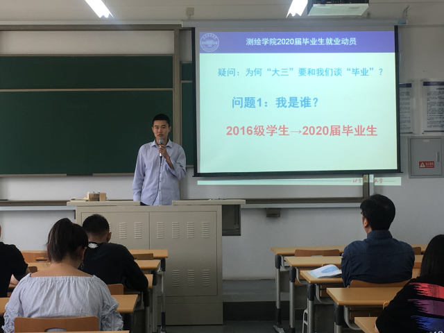 5月14日,测绘学院在大兴校区学F317教室召开2020届毕业生就业动员会,此次会议旨在对大三年级同学进行就业预动员,并部署就业见习等相关事宜。参加本次动员会的有测绘学院党委副书记冯永龙、就业辅导员施建民,以及测绘学院2016级全体学生。