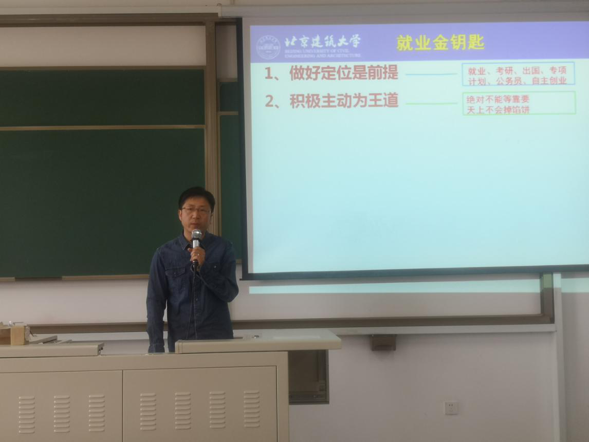 首先,施建民为同学们做就业动员,从“我是谁?”“我该去哪?”“我要做什么?”三个问题引导同学们思考准毕业生的身份背后隐含的意义,引导学生思考和关注即将面临毕业年级的学习和生活。随后,他重点介绍了目前的就业形势、招聘进程、有关政策、求职程序,提醒大家要进一步明确就业方向、就业地域等目标选择,并从求职简历、信息收集、面试技巧、就业见习等方面着手准备。最后,根据就业、考研、出国等不同情况,施建民与同学们一起梳理了时间节点,提醒大家把握好步入大四前的关键期,根据自身情况做好规划,以更充足的准备、更良好的状态、更积极的面貌迎接毕业年级的到来。