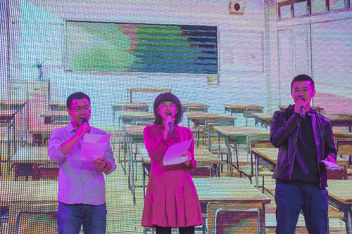 在采用微信登录的富有现代气息而又刺激紧张的抽奖环节过后,戏剧社的同学们带来了话剧《群猴》,他们用精湛的演技,真挚的情感,带着大家进入具有年代感的故事里;紧接着,张晨同学拨弄起琴弦,悠悠扬扬的唱了一曲动听的《再见吧,喵小姐》,温柔的歌声萦绕在会场;让人耳目一新的幻梦动漫社带来了舞蹈《东京夏日相会》,瞬间让观众们沸腾起来;觅音社的同学们带来了歌曲联唱《let it go》《take me to church》《关于郑州的回忆》《少年锦时》,以及街舞社带来的精彩表演《Brand New All School》,再次燃爆全场;洛桑顿珠同学演唱一曲藏族歌曲《1376》,用清亮悠扬的民族音乐向我们展示出民族文化的魅力。