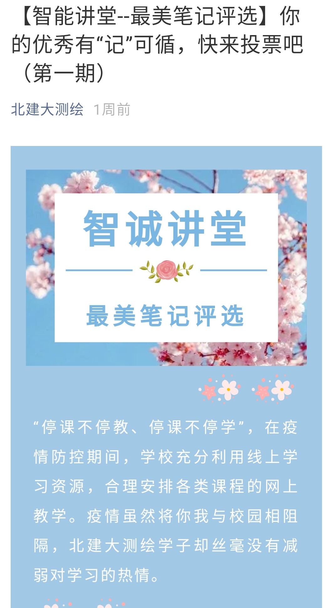 为展现线上教学的学习成果,营造良好学习氛围,树立优秀学习榜样,提升测绘学子学习热情,近期,测绘学院团委组织开展“最美笔记”线上评选展示活动。