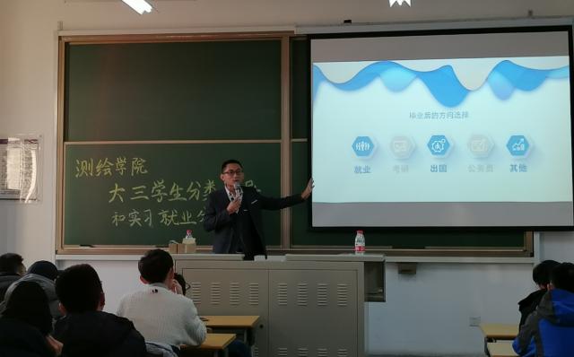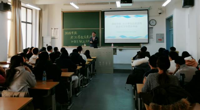 为提升大三年级同学的分类发展和就业择业意识,做好提前规划和准备,12月3日下午,测绘学院在大兴校区学院楼F座316教室召开17级本科生分类指导和实习就业分享会。此次分享会由“一起求职”机构专业导师张彤岩进行讲授,学院辅导员黄凯,北建大“职小牛”工作室负责人范红和部分2017级本科生参加了此次会议。