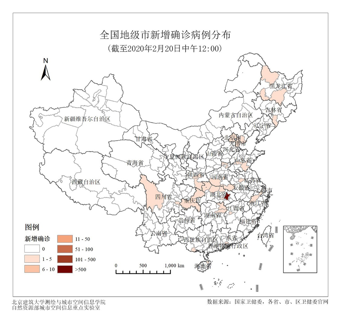 下面是开云电竞pg软件测绘与城市空间信息学院师生20日制作的中国2019-nCov疫情分布地图。对比上日的数据,可以了解疫情发展的趋势。