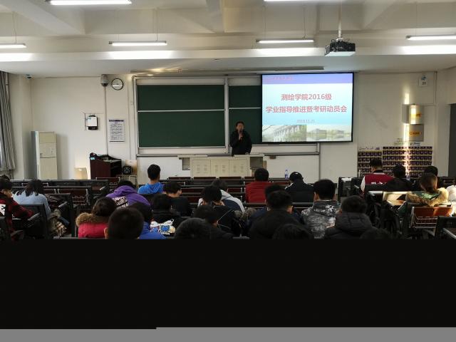 为进一步加强针对性的学业指导工作,将学业指导抓细抓实,促进学生成长发展,增强学生的学习热情和学业规划,提升考研的信心和决心,11月21日下午,测绘学院在基础教学楼A座召开2016级学业指导推进暨考研动员会。学院党委副书记冯永龙、辅导员施建民和2016级学生参加会议。