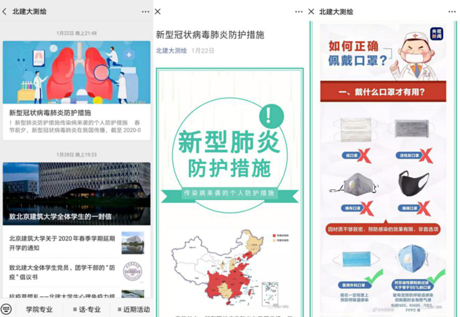 “北建大测绘”微信公众号推文“疫情阻击战,我们并肩同行!”部分内容
