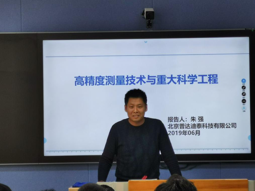 会上,刘宝园总经理对中海达公司做了简要介绍,描述了智能导航与无人驾驶等热点行业的紧密关系,表示智能导航班的学生未来就业前景广阔。朱强总监向参会同学和老师作了“高精度测量技术与重大科学工程”报告,并以FAST射天望远镜等重大工程为例,表示测绘专业在国家重大工程中有作为、可作为、必作为。