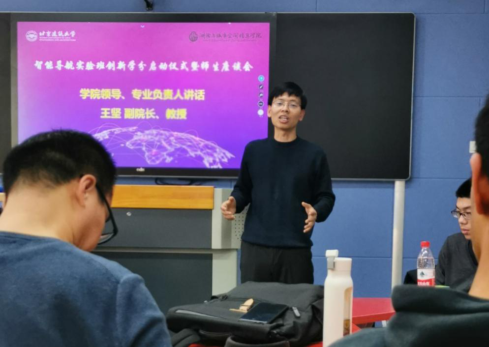 王坚教授将题字“智能导航实验班”授予班长王家兴。丁克良老师将智能导航实验班定制U盘赠予全体同学。