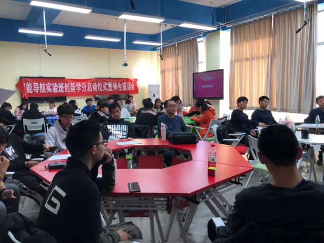 最后,智能导航班全体老师与学生进行了师生座谈,实验班将贯彻执行“本科生导师制”,借助行业企业等多方力量,助力学生成长成才,师生就有关问题开展交流并合影留念。