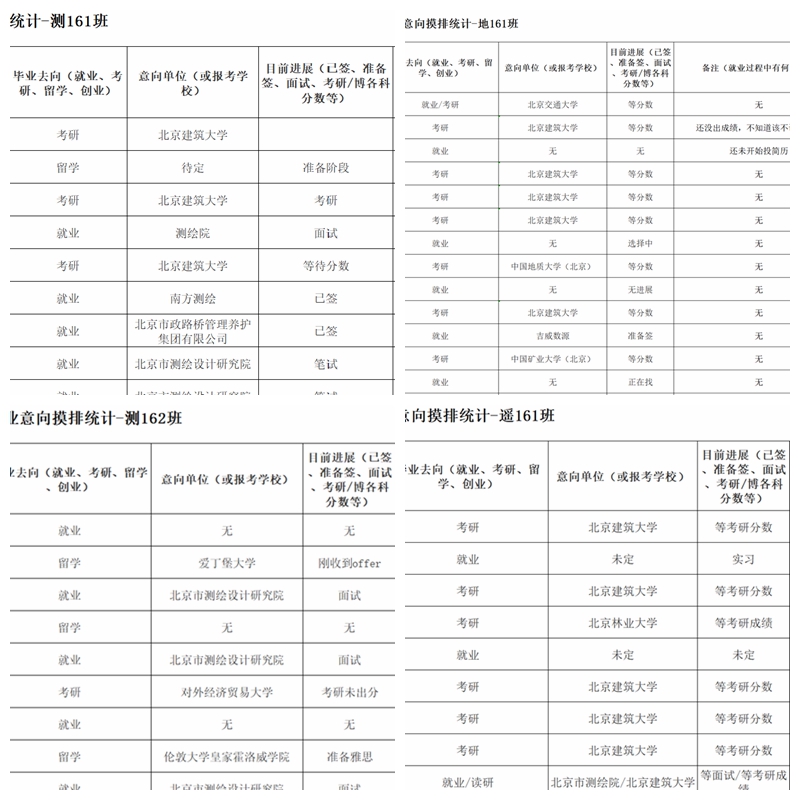 假期期间,学院建立本、研毕业生就业工作台账,对141名本科生、65名研究生的就业进展情况进行了全面了解和摸排,并就学生遇到的共性、个性问题进行分析。根据学生具体就业意向,结合校就业咨询群、出国留学群、简历制作群、面试指导群,开展精准指导。对有就业困难的同学,学院领导班子发动各系主任、毕业班班主任、就业辅导员进行针对性帮扶指导,尤其是对目前尚无就业意向单位同学、因学业困难导致就业困难的同学,加大就业推荐力度,指导重修、选课等方案并组织安排在线辅导和帮扶。