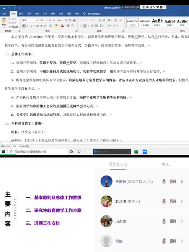 会后,各系召开视频会议进行教学方案学习研讨,讨论在线教学的具体方案和细节问题,保障本学期教育教学任务顺利完成。