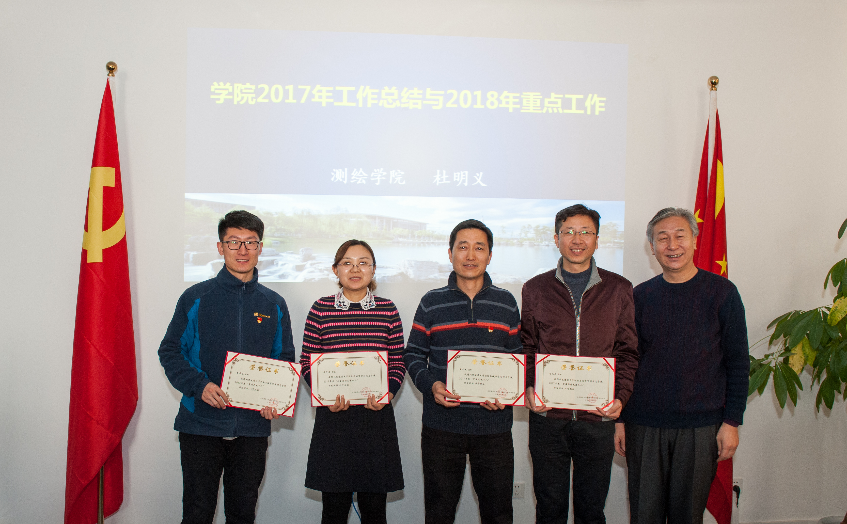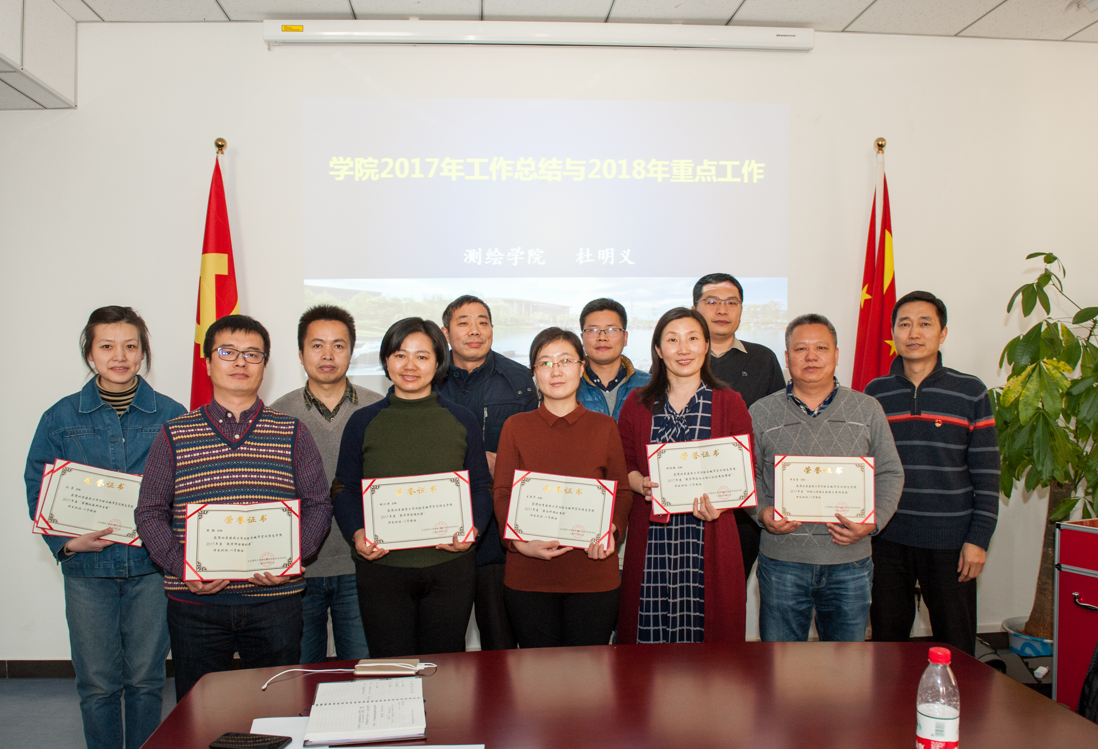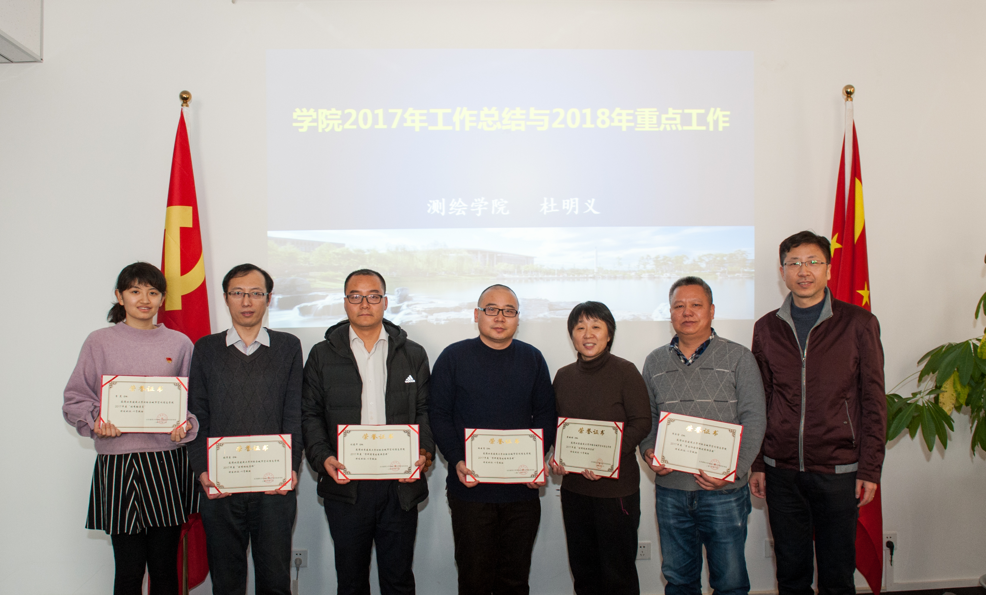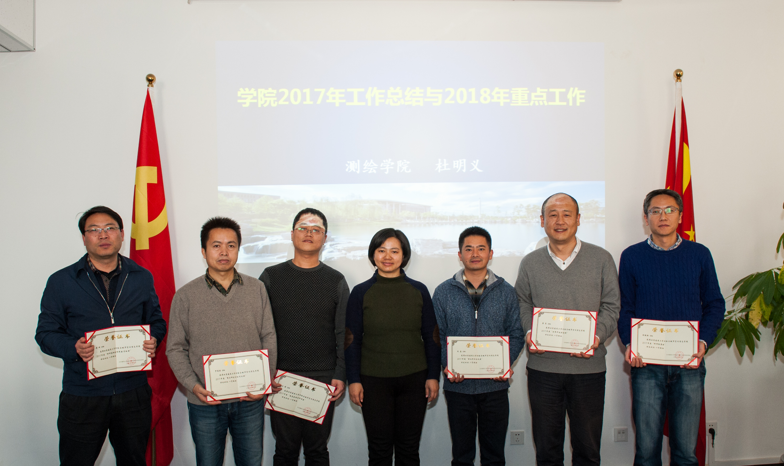 首先,院党委书记王震远宣读了测绘学院2017年度优秀个人表彰文件,对过去一年在学院各项工作中表现突出的教师进行表彰:李学芳等4人获党群工作优秀个人称号、罗德安等10人获教学工作优秀个人称号、刘祥磊等3人获学科建设工作优秀个人称号、周磊等8人获科研工作优秀个人称号、廖丽琼等6人获学生工作优秀个人称号。他希望被表彰的老师再接再厉,继续发挥示范引领作用,不断取得新成绩,希望全体教职工以优秀人员为榜样,努力推进教育创新,爱岗敬业,为推进学院各项工作的进一步发展做出更大贡献。