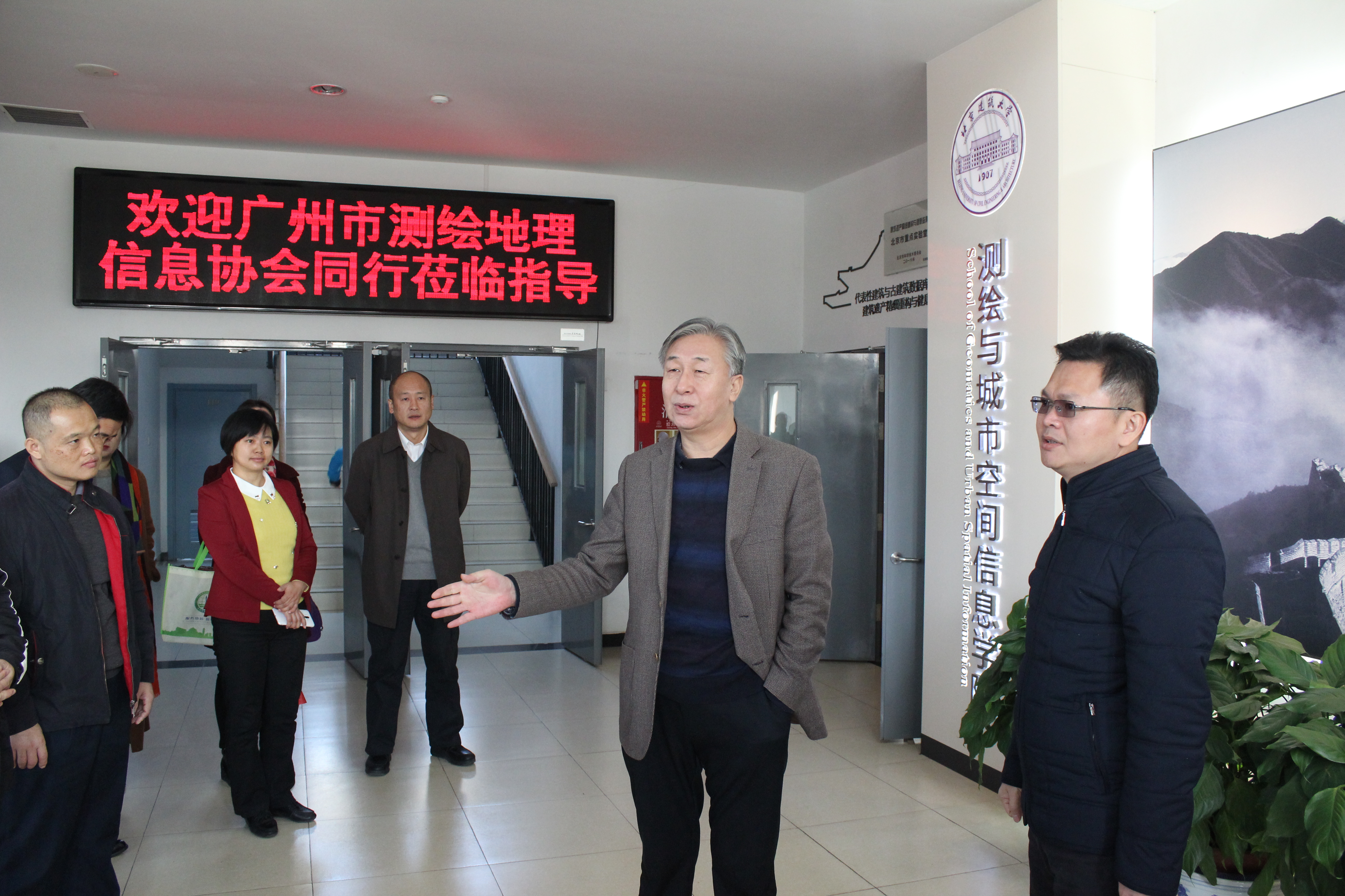 11月16日上午,广州市测绘地理信息协会到访我校测绘学院,来访客人为广东省国土资源测绘院、广州市四维城科信息工程有限公司、广州元测信息科技有限公司、广州市天驰测绘技术有限公司、广州市增城区国土资源测绘院、广州上都城市规划设计有限公司、广州安乔测绘科技有限公司、广州全成多维信息技术有限公司、广州市增城区城乡规划与测绘地理信息研究院、广州市从化区规划勘察测绘队等11个单位共19位单位主要负责人。测绘学院院班子、研究所所长、实验中心主任及党政办公室主任接待了到访客人。
