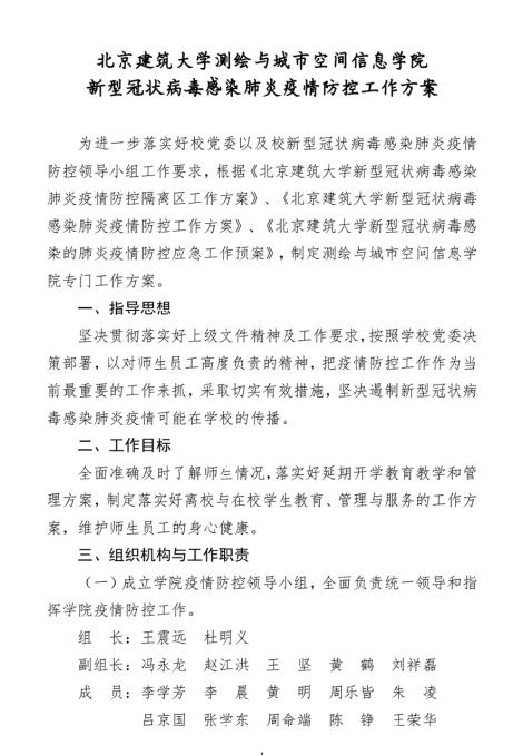 《测绘学院新型冠状病毒感染肺炎疫情防控工作方案》
