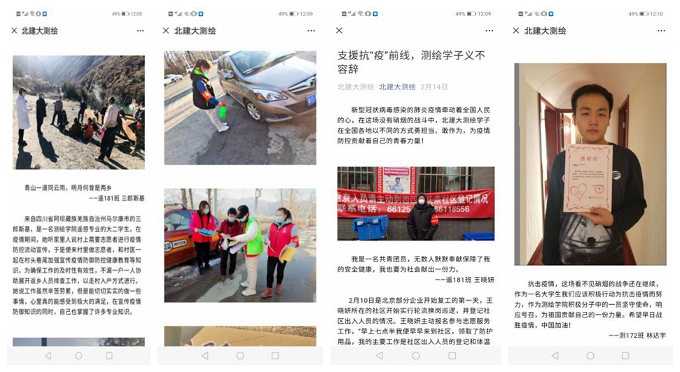 北建大测绘微信公众号报道学生参与防疫故事
