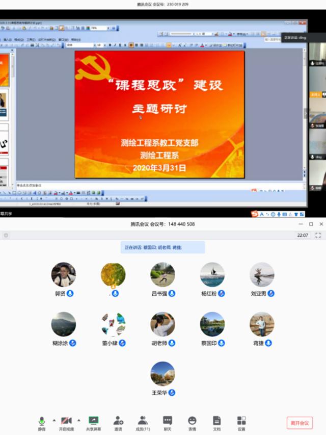 在疫情期间网络授课的特殊时期,为扎实推进“课程思政”建设,3月31日下午,测绘学院各教师党支部集中开展“课程思政”建设线上研讨会。全体教师支部党员及各系教师参会。会议由各党支部书记主持。