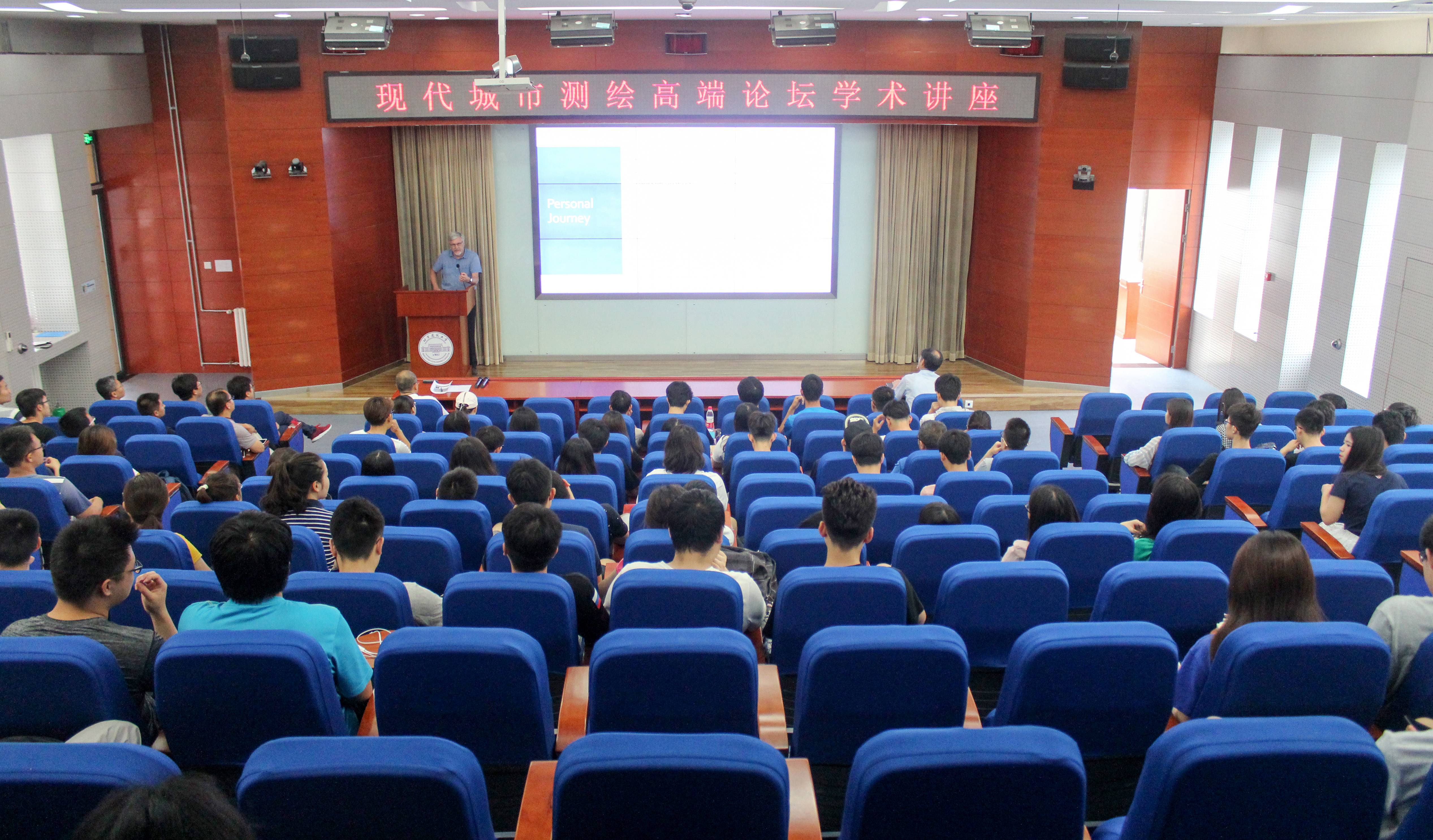 2018年7月10日上午,由测绘学院、高精尖中心、教师发展中心联合举办的现代城市测绘高端论坛系列活动在学院楼E座报告厅进行。美国内布拉斯加大学奥马哈分校地理系教授Michael P. Peterson和武汉大学艾廷华教授做专题学术报告,测绘学院师生近200人参加本次论坛,报告由测绘学院副院长霍亮主持。