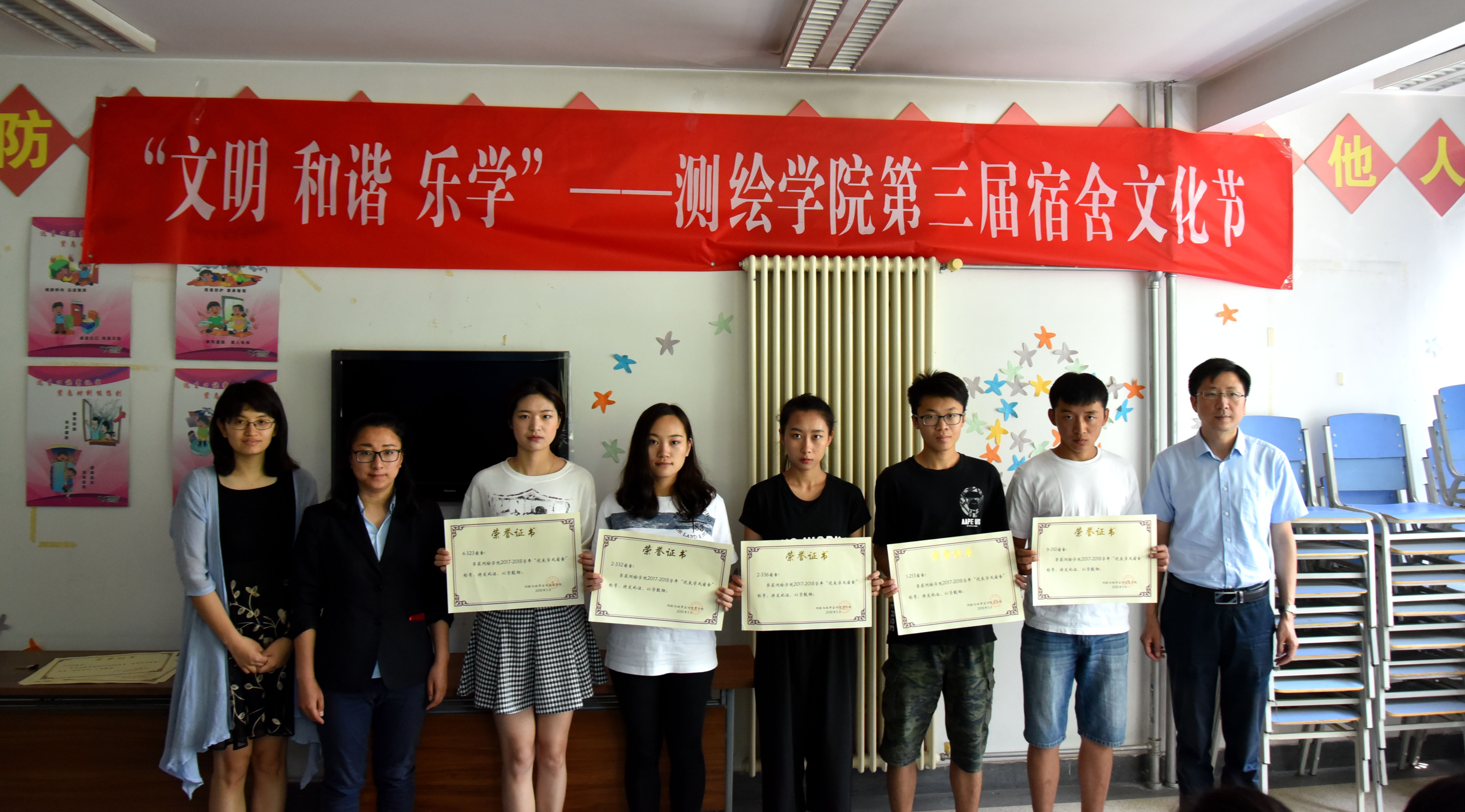 宿舍作为大学生学习、生活、人际交往及开展各项活动的重要场所,对同学们学习生活习惯的养成具有重要影响,宿舍生活是学生校园生活的重要组成部分,在完全学分制背景下更发挥着更为重要的、不可替代的作用。为丰富广大学生的宿舍文化生活,增强集体凝聚力和交流,打造良好的校园文化氛围,测绘学院于5月至6月举办第三届宿舍文化节。本次宿舍文化节以“文明 和谐 乐学”为主题。5月31日中午,宿舍文化节开幕式在大兴校区四号学生公寓楼活动室举行,公寓中心郑盼、测绘学院党委副书记冯永龙、团委书记李晨、辅导员崔荣臻及学院各班生活委员、心理委员参加。开幕式由测绘学院团委书记李晨主持。