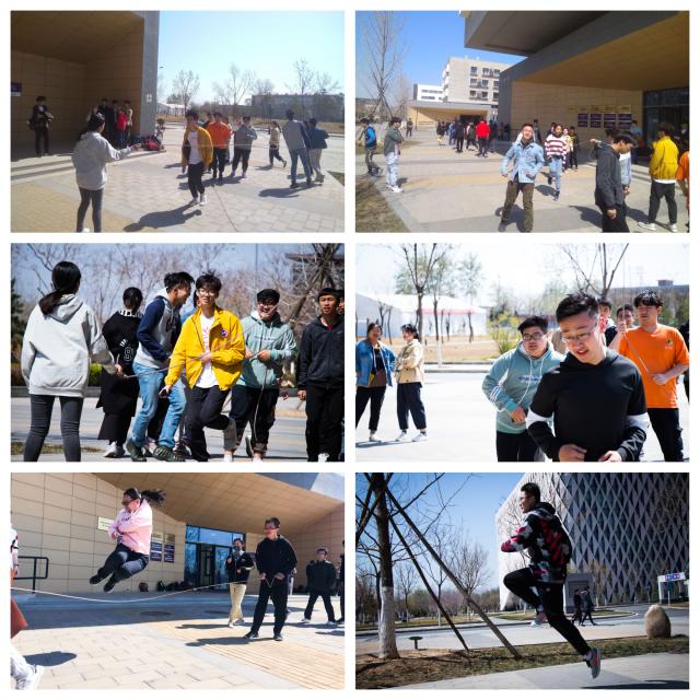 比赛前各班进行了训练和队员选拔。赛前,各队纷纷热身。比赛还未开始,队员们就个个情绪高涨,摩拳擦掌,准备一显身手。随着裁判员发令,比赛正式开始,摇绳的队员时刻专注着,努力配合着跳绳队员的节奏,队员以飞快的速度一一跳了起来,紧密衔接,尽量减少失误。各个参赛队显然是有备而来,摇绳和跳绳的队员配合相当默契,几乎没有磕绊,看得场外观众赞叹不已,不约而同地为其数着次数,宛若自己就是那身轻如燕的好手。学院楼F座外一片热闹沸腾的景象。