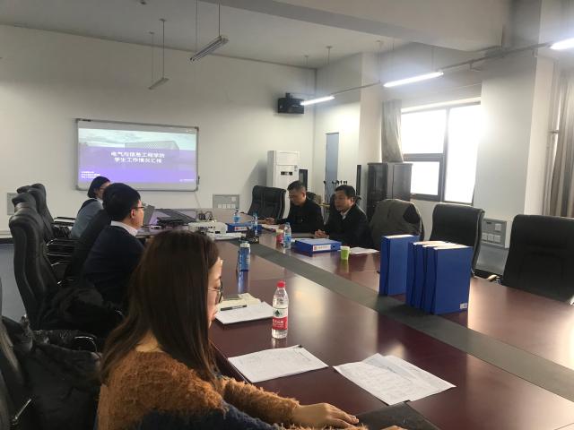 调研会上,电信学院党委副书记关海琳从学习宣传贯彻十九大精神、思想政治教育、学风建设举措、审核评估准备工作等方面,汇报了近期学院学生工作的情况。电信学院院长郭茂祖、学院党委书记张雷分别就学生工作的情况给予了评价。