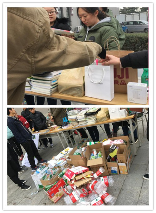 中午十一点活动开始,就被许多前来参与的同学紧紧包围,大家都争着拿出日常积攒的饮料瓶、旧书本来换自己心仪的小物品,团委学生会工作人员有条不紊的整理交回来的塑料瓶并给予登记。活动结束后,工作人员亲自将同学们的爱心物品变卖到废品站,所得的收益将全部用于后续的爱心公益活动当中,为需要的人们送去一片温暖。