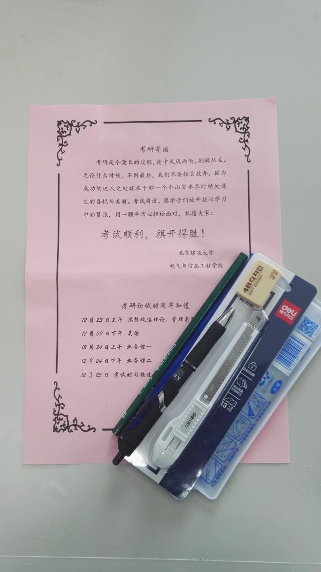 慰问会后,院领导为考研同学送上了精心准备的慰问信和慰问品,礼物虽小但承载着学院全体老师满满的爱心和诚挚的祝福。