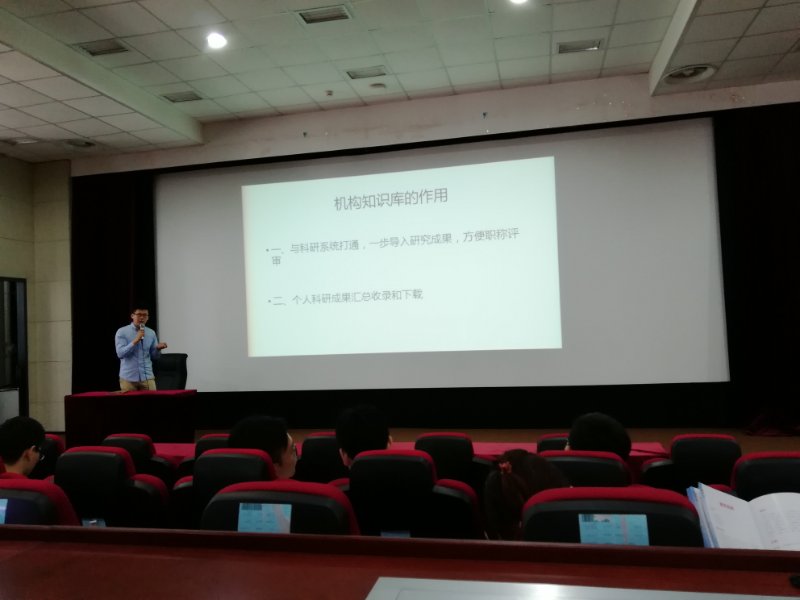 图书馆高振老师首先介绍了我校机构知识库的作用,对学校图书馆的相关检索内容做了简要说明。