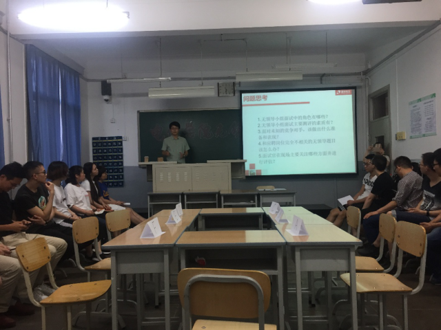 本次模拟面试活动是由电信学院研究生会发起并组织开展,采取无领导小组讨论的面试形式,现场对参加同学进行分组,各组轮流面试,等待面试同学在旁边观摩、学习,并可对正在面试同学的表现进行打分。