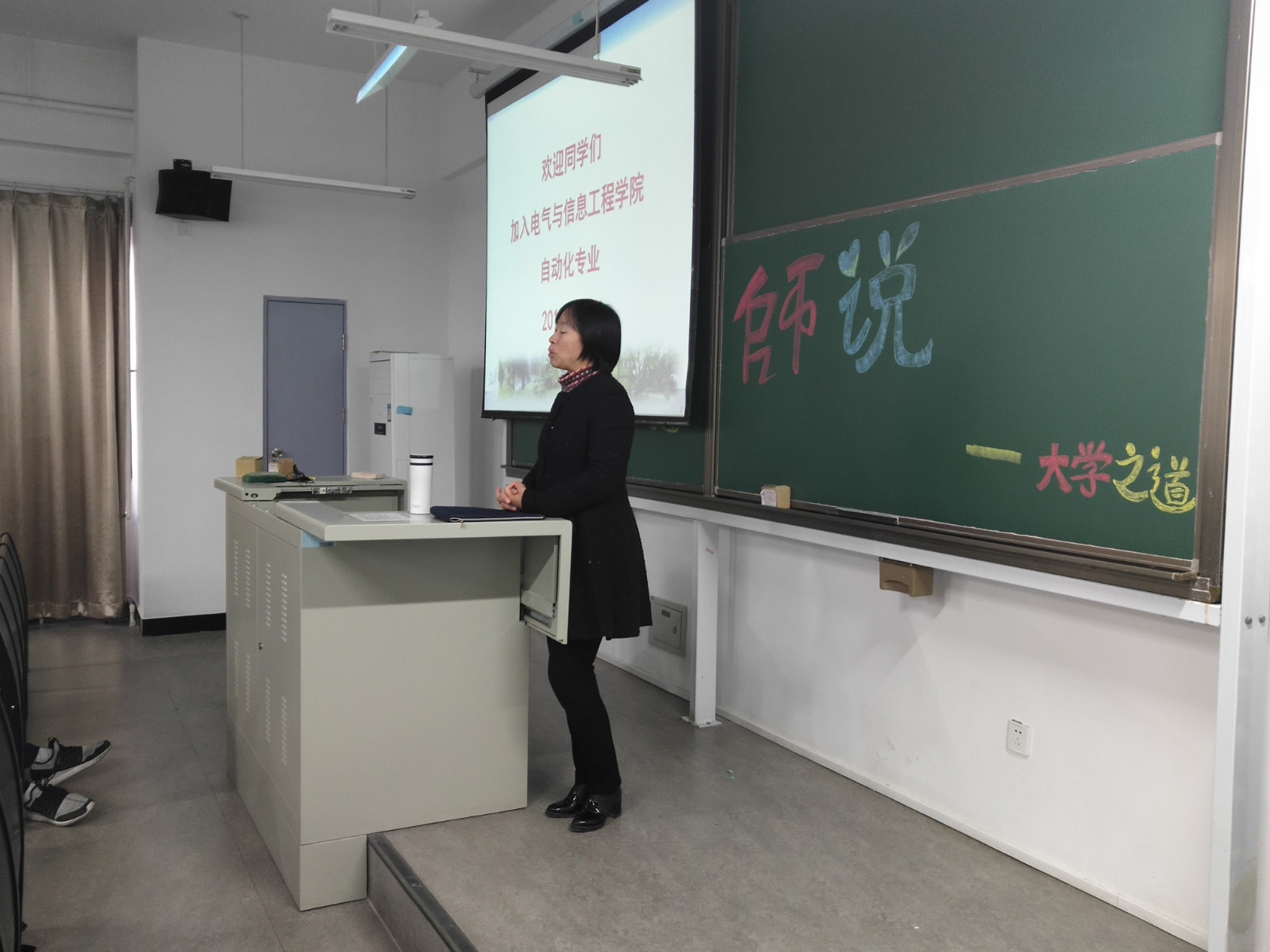 魏老师结合自身的教学经历、生活经历,用诙谐幽默的语言为同学们耐心讲述了如何做好一名优秀的大学生,让同学们明白了大学绝非游乐放松之场所,而是锻炼自己放飞梦想实现自我价值的地方。魏老师从师资力量、学院历史、学院现状、培养计划四个方面入手介绍了学院情况,使学生对四年的求学之路充满了期待;还介绍了自动化专业特点、专业未来发展方向、工作就业以及考研、出国等各个方面,让同学们对自动化有了深刻全面的认识,帮助同学们树立了学习目标,增强了同学们的专业兴趣与专业自豪感。最后一一耐心回答了同学们提出的问题,解开了学生们学业与生活上的疑惑。