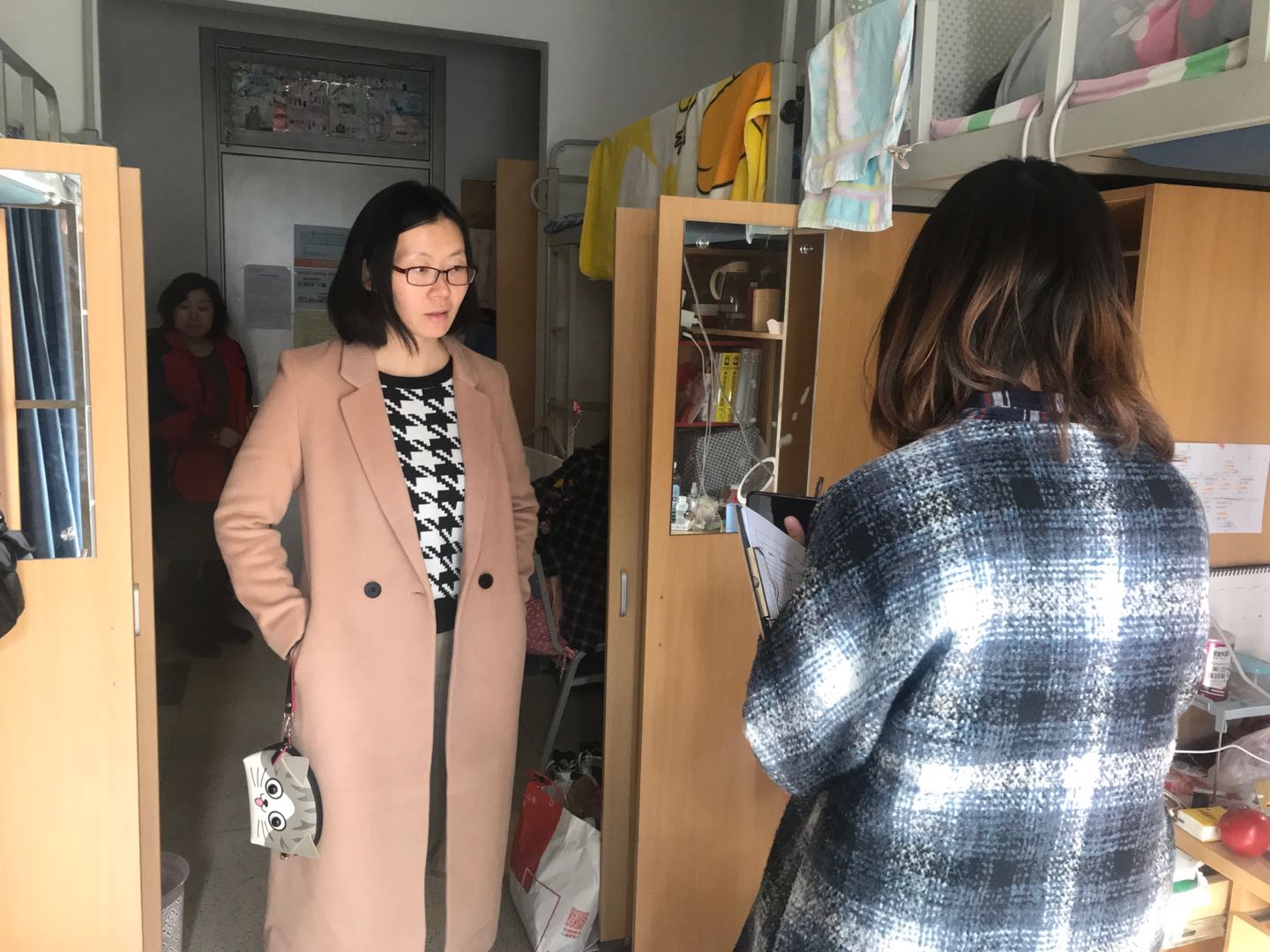 党委副书记关海琳带辅导员检查了学生宿舍安全。