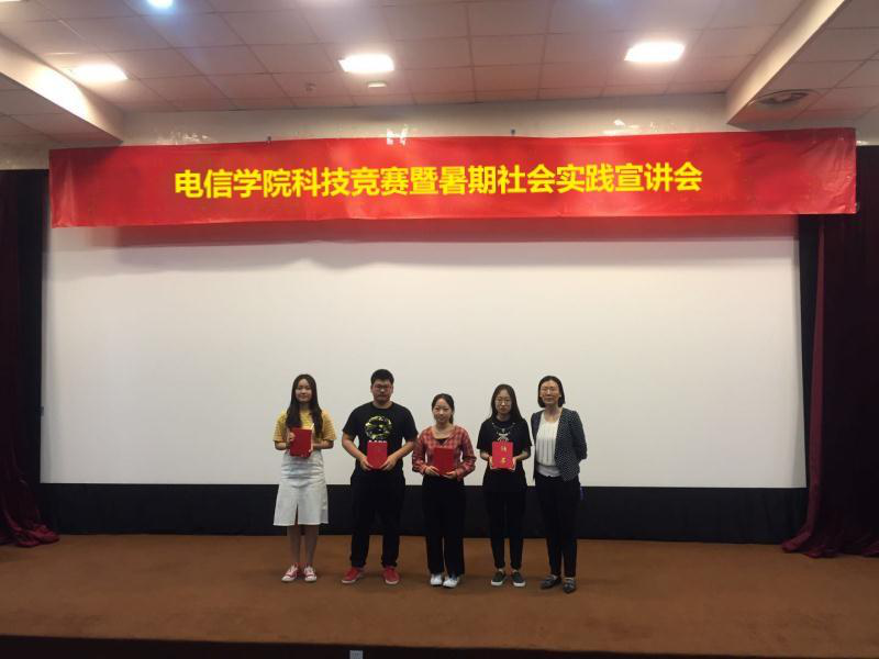 为促进2018级新生对专业知识的深入了解,领略科技的魅力,同时全面总结宣传暑期社会实践和科技活动成果。5月21日下午,电信学院在学D报告厅召开科技竞赛暨暑期社会实践宣讲会。学院党委副书记关海琳,分团委书记田奔、18级辅导员翟玮老师出席会议,17、18级部分学生参加活动。会议由分团委书记田奔主持。
