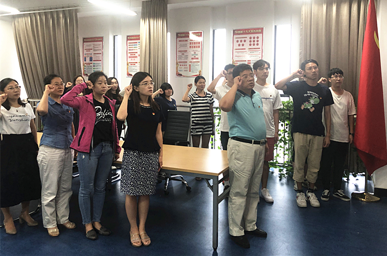 最后,全体党员面对党旗再次庄严宣誓,铭记历史,不忘初心,主动担当作为,充分发挥党员的先锋模范作用。