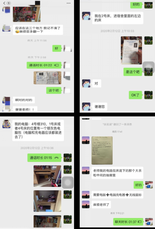 电信学院为进一步保障教学工作顺利开展,针对学习资料或电脑滞留在学校的学生提供拿取服务。学院研究生导师、辅导员采用双人视频连线学生的方式取出物品,京内学生的物品送至校门外转交学生,京外学生的物品通过快递的方式邮寄。共为23名本科生、2名研究生拿取物品,其中邮寄快递10件。从宿舍到校门,或到邮寄地点多次往返,累计50余次。