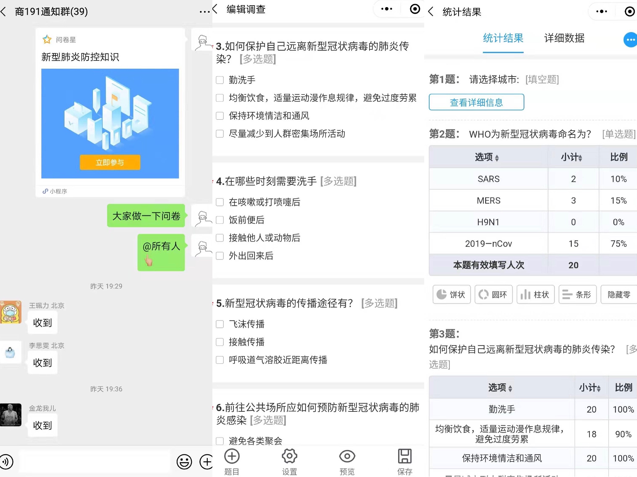 商191团支部开展疫情防控知识问答活动,城181团支部组织收看《老师请回答——疫情防控特别节目》,促进大学生对疫情防控知识的学习,把科学防控知识内化于心,外化于行。
