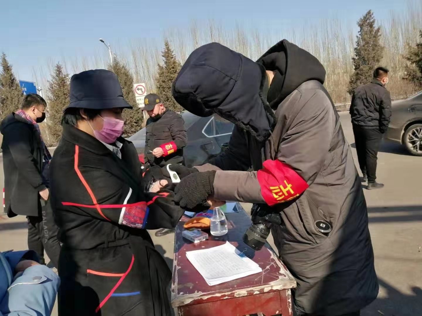 吴佳声为过往人员检测体温(右一为吴佳声)