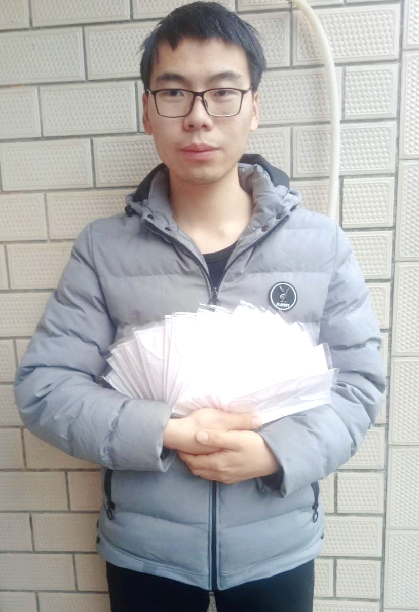 在王定河心中,学校及学院领导坚持每周一次视频会议安抚湖北学生的暖心作为,还有老师们逆向而行采购寄送来的防疫物资,都是他坚持志愿服务的强大精神支撑。“学校守护着我们这些湖北学生,而我一定要去传递这份守护!”挺身而出不为英雄情怀,只盼情暖人间。然而,敢作为、勇作为也伴随着关心带来的“阻碍”。他说:“我的家人因为担心我的安全,一开始不太愿意让我参加疫情防疫,期间我父亲也多次劝阻并来接替我的工作。但是,当他们看到我的坚持和优异表现后,他们现在都很理解支持我,更以我为傲,真心感谢我的学校及亲人给予的鼓励”。王定河不计报酬帮助他人,尽己所能参与抗疫,动员影响他人,一举一动都镌刻着当代青年的家国情怀。