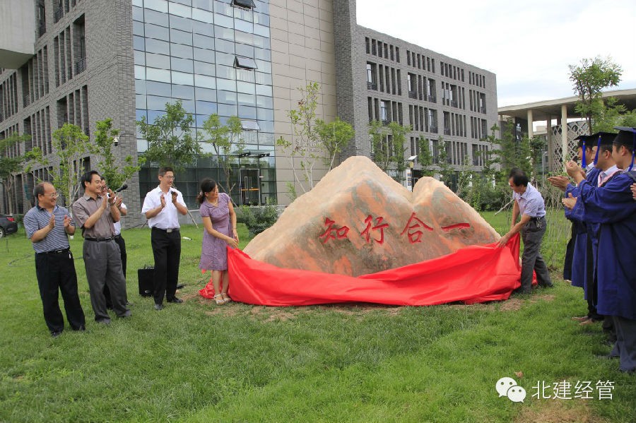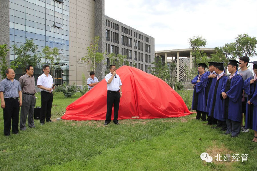 2014届 MBA毕业学生为表达对母校老师的谢意,向开云电竞pg软件捐赠景观石,揭幕仪式于2014年7月8日下午在大兴校区学院楼A座楼前举行。研工部副部长李云山、招生就业处副处长朱俊玲,经管学院院长姜军、党总支书记张庆春、以及学院班子成员、学院教师代表出席了仪式,2012级MBA全体学生参加了活动。仪式由经管学院党总支副书记魏强主持。