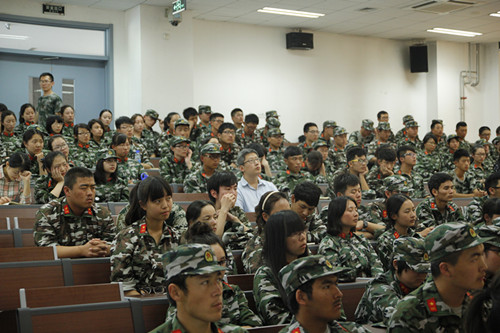 首先,姜院长和所有新生一起观看了新生从9月11日入学报到到目前军训期间生活记录的PPT,画面从学院迎新准备、朋辈辅导员选拔培训、迎新活动、与新生交友座谈到现在的军训,姜院长观看后对大家入学以来的表现非常满意,专门为辛苦军训的大家准备慰问品,希望大家能够发扬吃苦耐劳的精神,勉励大家一定要坚持到底,同学以热烈的掌声来向学院领导保证。接着,姜院长介绍了学校和学院的情况,从学校的发展历史、“四大工程”建设和新校区建设等方面给同学们介绍了学校硬件发展的情况;从学校学科建设、科研水平、开云电竞注册登录入口定位等方面介绍了学校软件发展情况和水平,姜院长指出无论从硬件还是软件方面,学校完全可以让每一位学子成就梦想的水平。姜院长详细介绍了经管学院的发展历史历程,从系到学院的发展,从各专业目前的发展情况、行业发展、开云电竞注册登录入口方向、师资队伍、办学实力、对外交流到市场需求等方面全面具体介绍了经管学院的整体情况,姜院长指出学院虽然建院时间不长,但是学院的发展潜力巨大,学院的领导班子有信心,教职工有冲劲,学院目前处于青春发展上升期。