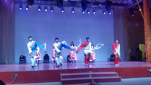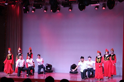 此外,《孔子说》风韵盎然,展示了中国传统文化的魅力;相声表演《四方诗》活泼风趣;舞蹈《民族村里的小伙儿》和“中華情•民族风”系列舞蹈《罗敷行》、《魅舞西域》、《藏式踢踏舞》展示了各民族学生的风采;最后一曲《美丽中国》,将所有元素汇集在一起,抒发了来自不同民族、不同地区学生的爱国情怀,将晚会的气氛推向高潮。