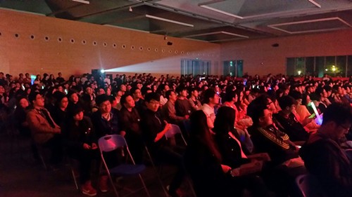 晚会结束后,同学们仍意犹未尽,舞台上仍然在载歌载舞