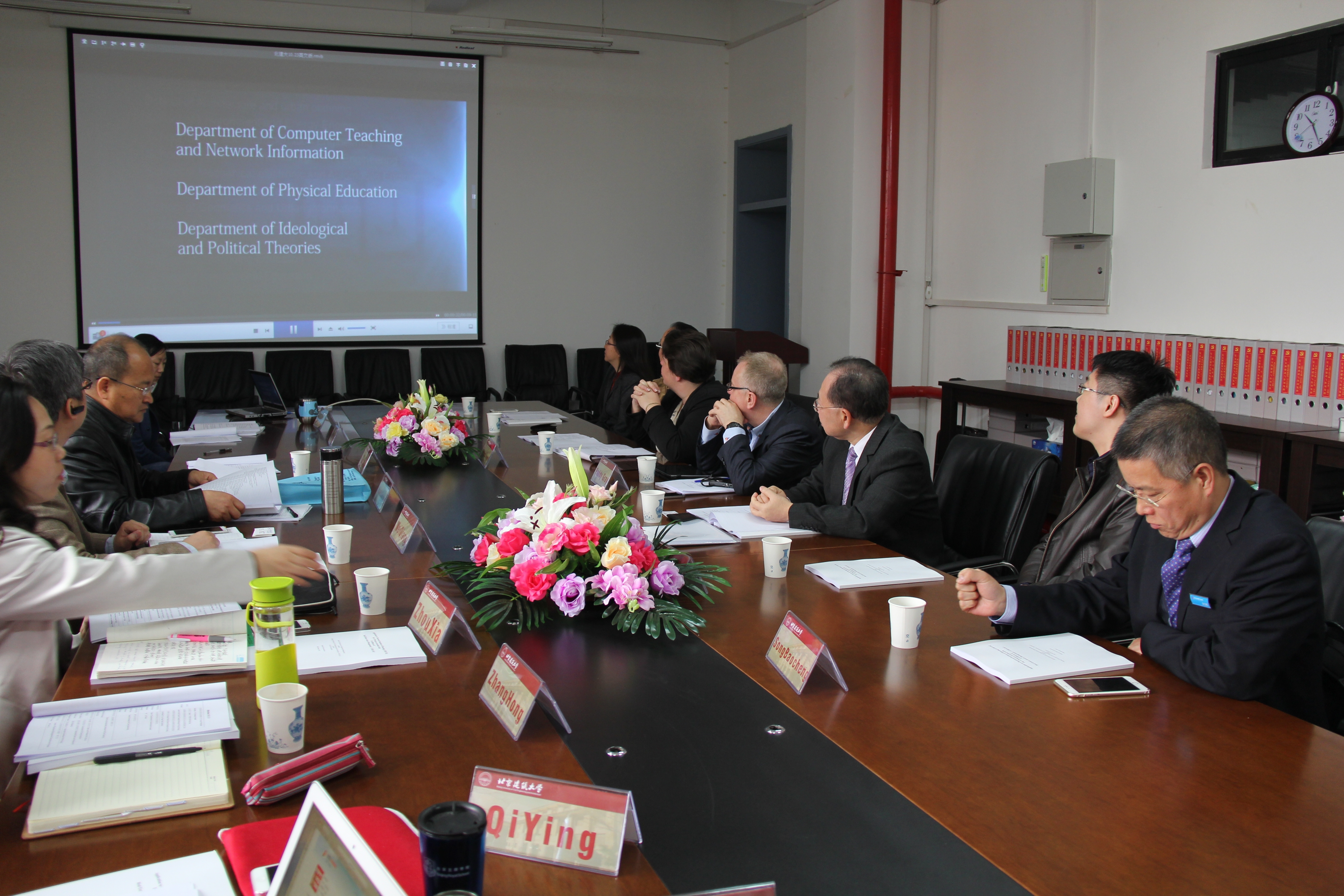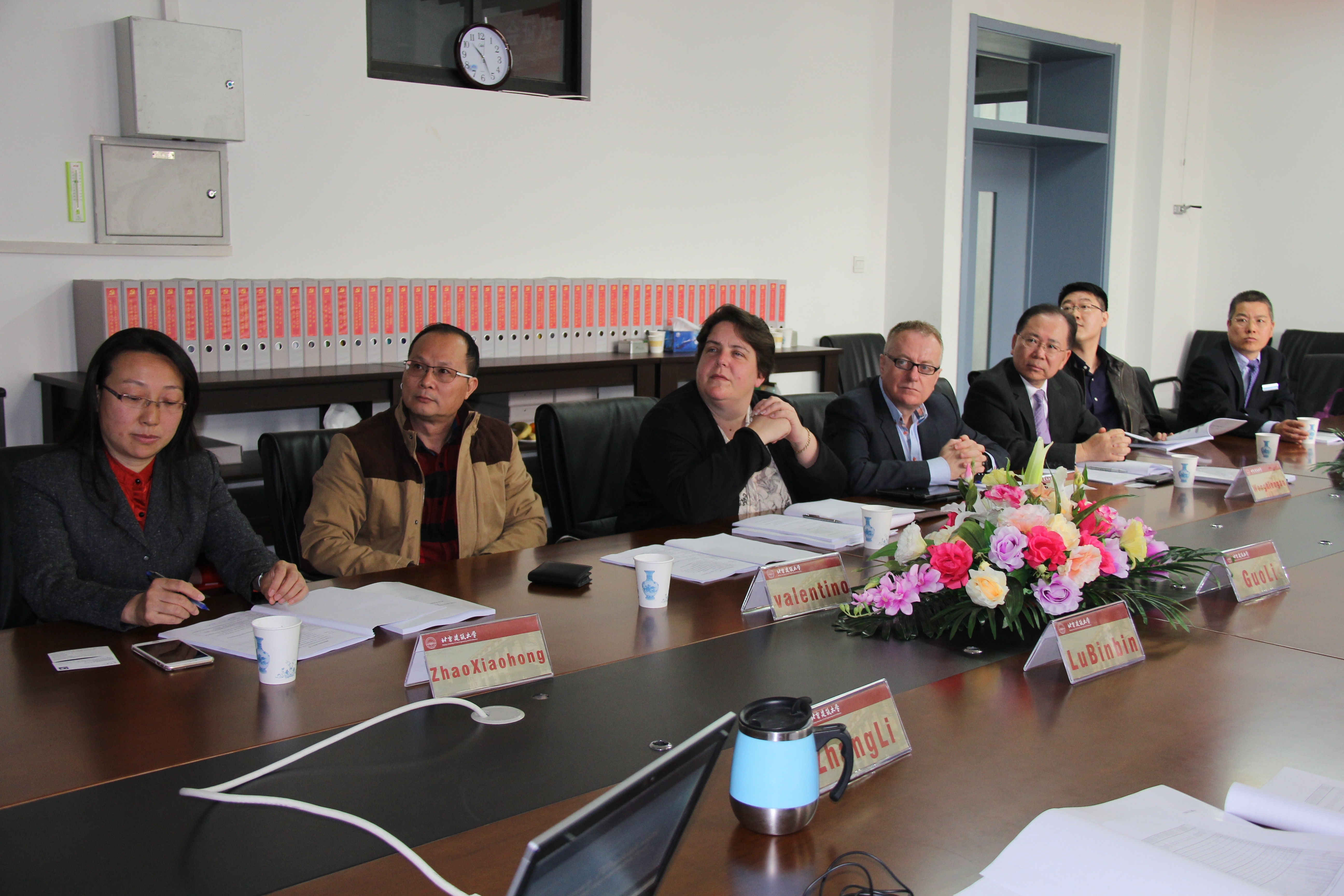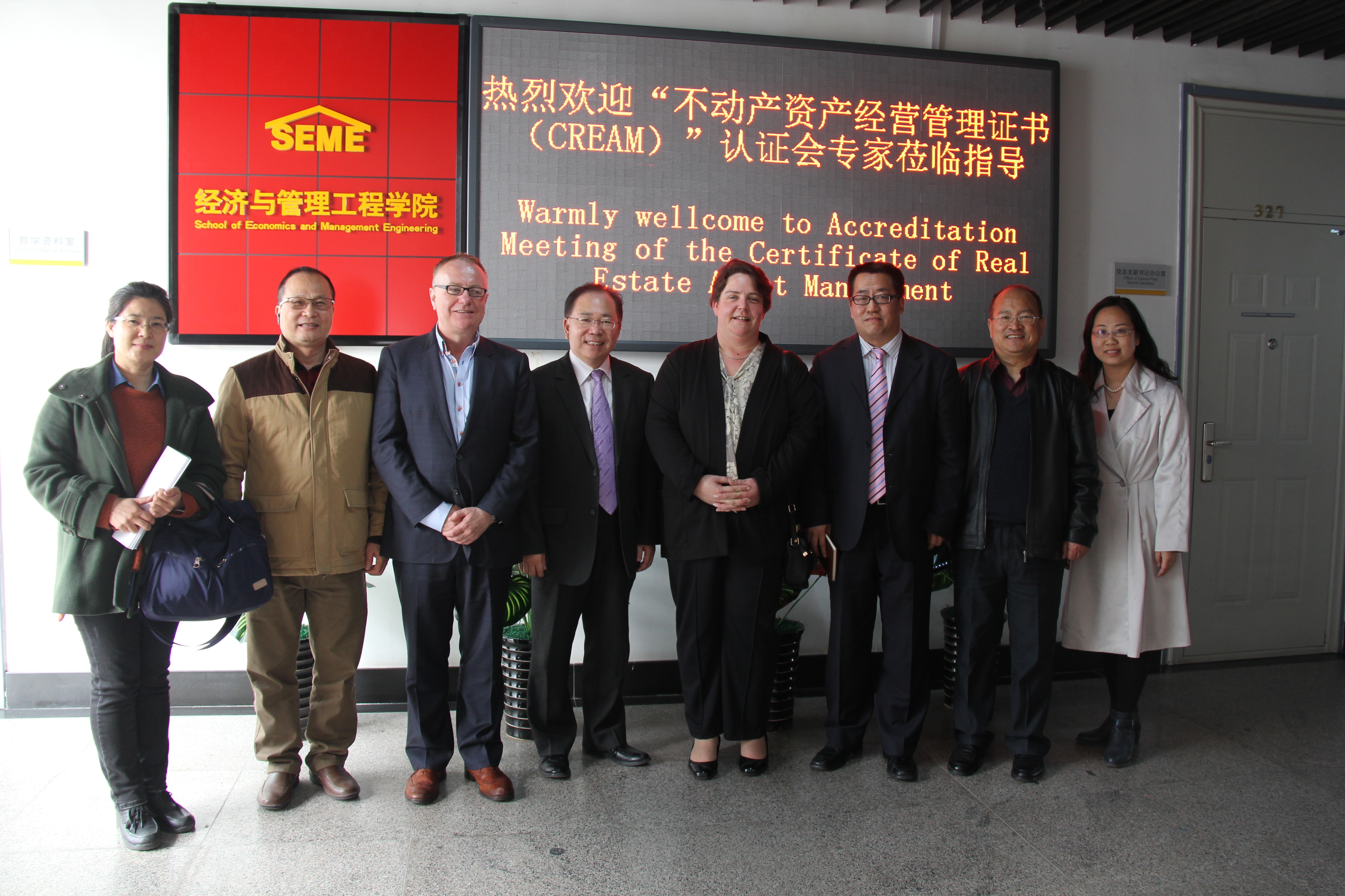 “不动产资产经营管理”证书认证工作于2013年10月启动。经可行性论证、课程筛选、实习基地落实及申请评审等阶段,终于迎来现场评估。2015年3月30日,CIH总部委派标准部门主管Vanessa Howell女士、北爱尔兰Ulter大学Paddy Gray教授、CIH亚太分会黄显能总经理及教育培训委员会委员练均华博士一行四人抵达我院,中国物业管理协会发展研究部刘寅坤主任、北京市物业管理行业协会宋宝程秘书长及我校国际交流处赵晓红处长到场给予关注与支持,经管学院领导班子成员、所在专业系正副主任、四个专业负责人、骨干教师及主管学生工作老师出席认证会。