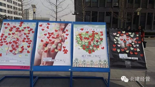 2015年3月18日——19日,志愿者们在大兴校区食堂北门展开了“春暖花开•献爱心” 现场捐赠活动,在捐赠过程中,许多学生将自己不穿的衣服和不用的书籍纷纷捐献出来,很多同学也在明信片写下了对受助者的关切话语及鼓励,大家用五颜六色的爱心贴,共同完成了一张张充满爱心的海报。同学们的爱心行动深深地感染了参与活动的每一个人,这样一份小小的爱心,期望可以代表我们的心意传递到需要帮助的人手中,点燃他们的希望。