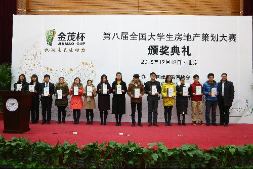 12月12日,“金茂杯”第八届全国大学生房地产策划大赛总决赛暨颁奖典礼在我校大兴校区隆重举行。校党委副书记张启鸿,中国建设教育协会副秘书长李奇,中国房地产业协会副会长苗乐如出席了颁奖典礼,中国金茂控股集团有限公司营销管理部总经理助理霍博宁,校团委书记朱静,经管学院院长姜军、院党委书记彭磊、副书记魏强、副院长周霞,以及各参赛队指导教师代表与全体参赛学生参加了活动。