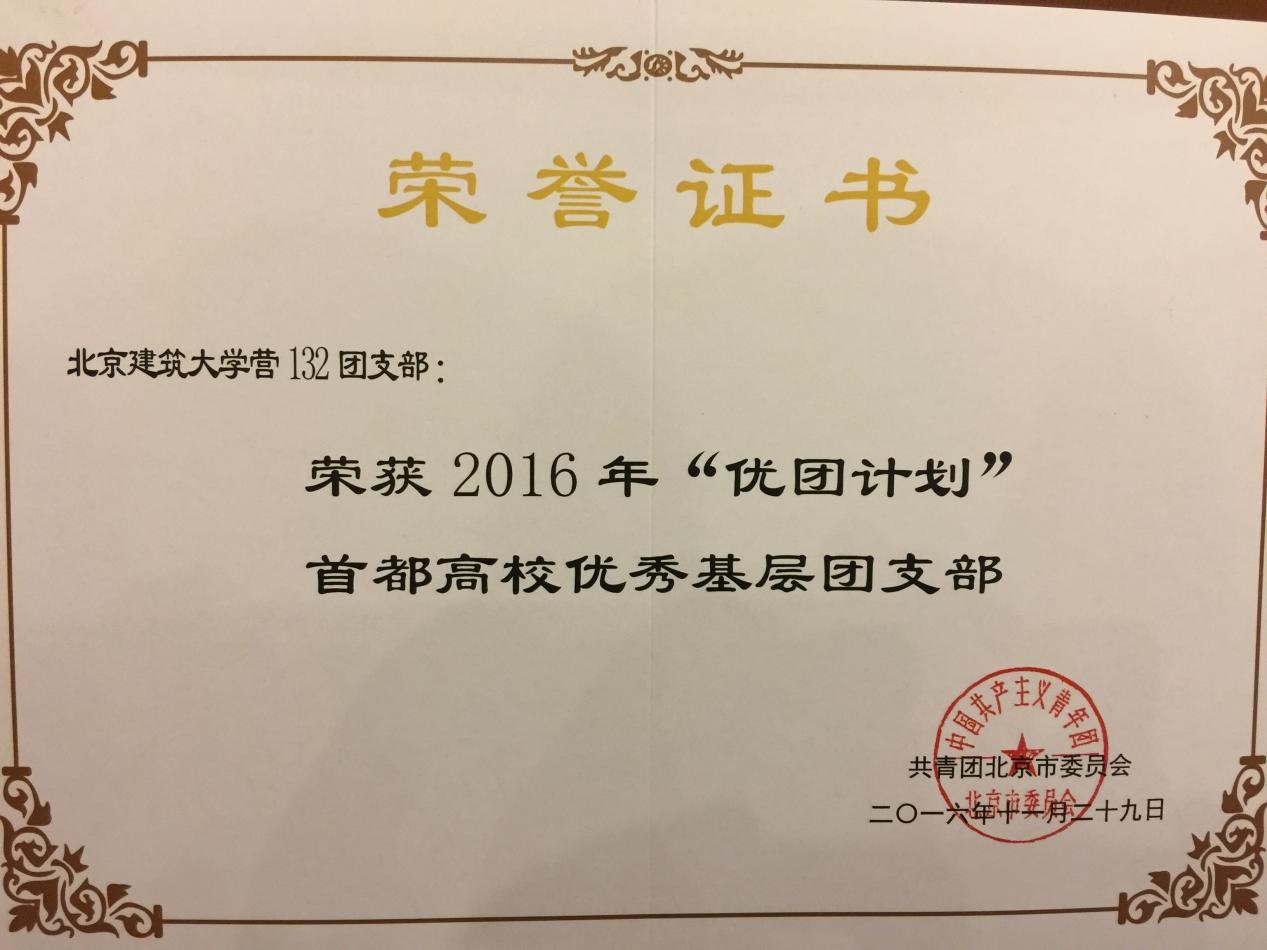 我校经管学院营132团支部荣获2016年“优团计划”首都高校优秀基层团支部