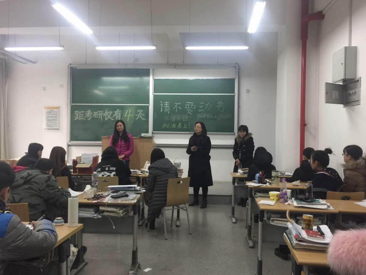 彭磊书记代表学院向同学们表达了慰问。她表示,学院非常支持同学们考研,考研能拓广知识面,开拓视野和思路。“考研成功的关键性因素是端正态度,给自己一个正确的定位,并充分利用好时间。考研的过程给同学们提供了一个很好的梳理自己的机会。”彭磊书记如是说。此外,她提出,希望同学们重视短暂记忆,希望同学们珍惜考前重要的几天时间,在紧张起来的同时要调整状态,祝福同学们在考场上发挥出最好的水平。