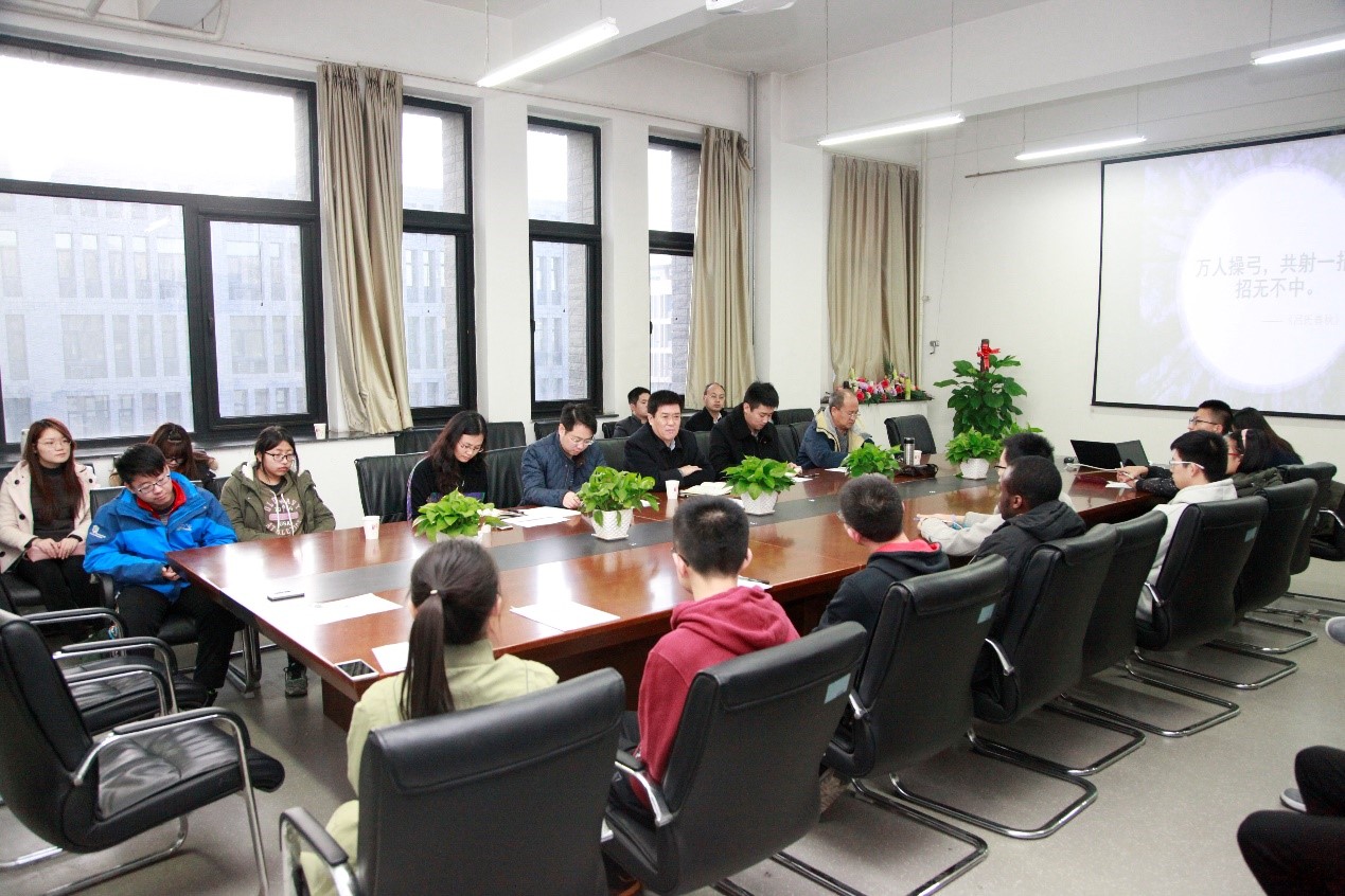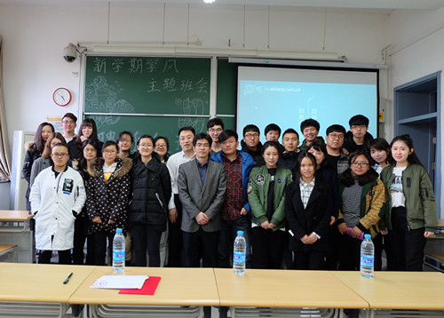 为深入贯彻学习全国高校思想政治工作会议精神,进一步落实学校教风与学风建设联动工作部署,全面推进北建大精神文化体系宣传教育,切实发挥主题班会在学风建设、班级建设和学生教育中的重要作用,以社会主义核心价值观为指导,依照学校《关于召开新学期学风建设主题班会的通知》要求,经过悉心筹备安排,经管学院以班级为单位,于2月19日下午统一召开全院各班新学期学风建设主题班会。校党委书记王建中、保卫处处长牛磊、财务处处长贝裕文、审计处处长孙文贤、资产与后勤管理处处长刘蔚、党政办公室副主任齐勇,经管学院院长姜军、党委书记彭磊以及学院领导班子成员出席,各班班级导师及辅导员参加。