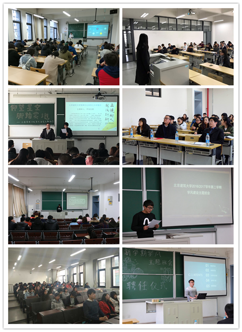 主题班会上同学们集思广益、畅所欲言,各班对上学期学习成绩进行了系统全面的总结分析,汇报了当前班级学风建设工作情况,畅谈了寒假学习和实践收获,分享了周密翔实的新学期学习计划,并以学校教风学风建设联动机制、北建大精神文化体系为切入点,展开了广泛而深入的交流。