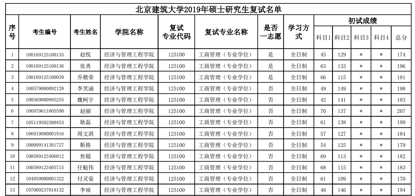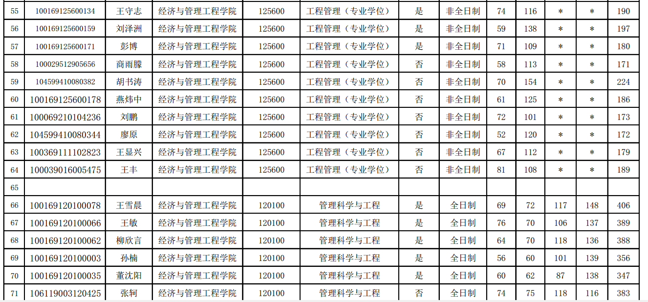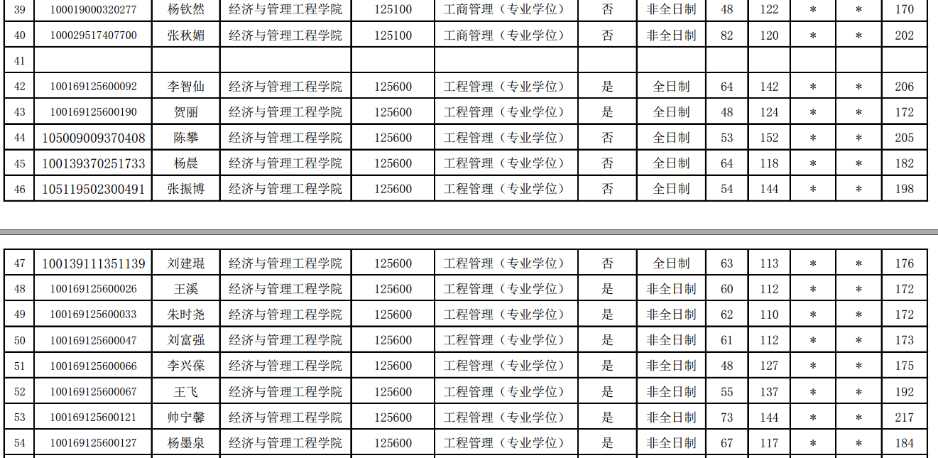 开云电竞pg软件经济与管理工程学院2019年硕士研究生复试名单