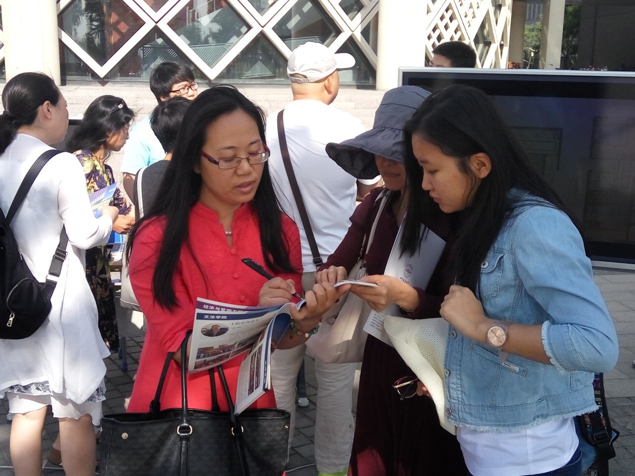 这次高招会的志愿者们不惧辛苦,认真尽责。虽然天气炎热,依然兢兢业业,坚守在自己的岗位上,以认真周到的服务和热情洋溢的笑容,为此次高招咨询会留下了一道令人难忘的风景线。